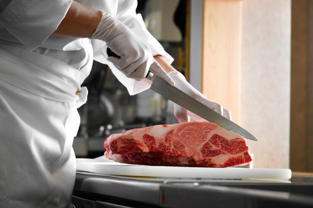 仕入れたばかりのお肉を毎朝職人が丁寧に手切りしています。